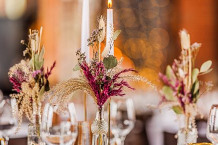 Kleine aber wirkungsstarke Akzente werden mit Laternenbeleuchtung, Vintage-Dekoration sowie den derzeit beliebten „LOVE-Letters“ und der „Candy-Leiter“ erzielt.