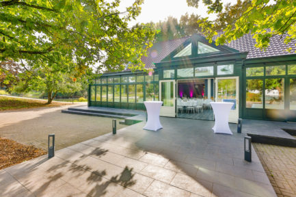 Hier trifft altes Fachwerk mit Steinmauern auf modernen Stil mit lichtdurchflutetem Wintergarten. Der Außenbereich im Grünen, angrenzend zum See gelegen, bietet die Möglichkeit den Empfang im Freien zu gestalten. Auch ist eine freie Trauung vor Ort auf einer großen Fläche möglich.