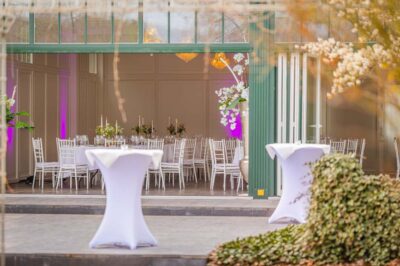 Ausgestattet mit runden Banketttischen, getoppt mit weißen Chiavari Stühlen können Sie ein unvergessliches Event in der Villa Schwanensee verbringen. Kinderhochstühle werden auf Wunsch gerne zur Verfügung gestellt. Angrenzend zur Tanzfläche ist ein fest installierter Fotobox-Hintergrund mit NEON Sign gegeben. Eine großzügige Raumdekoration, sowie eine hochwertige Musikanlage sind bereits fest installiert.