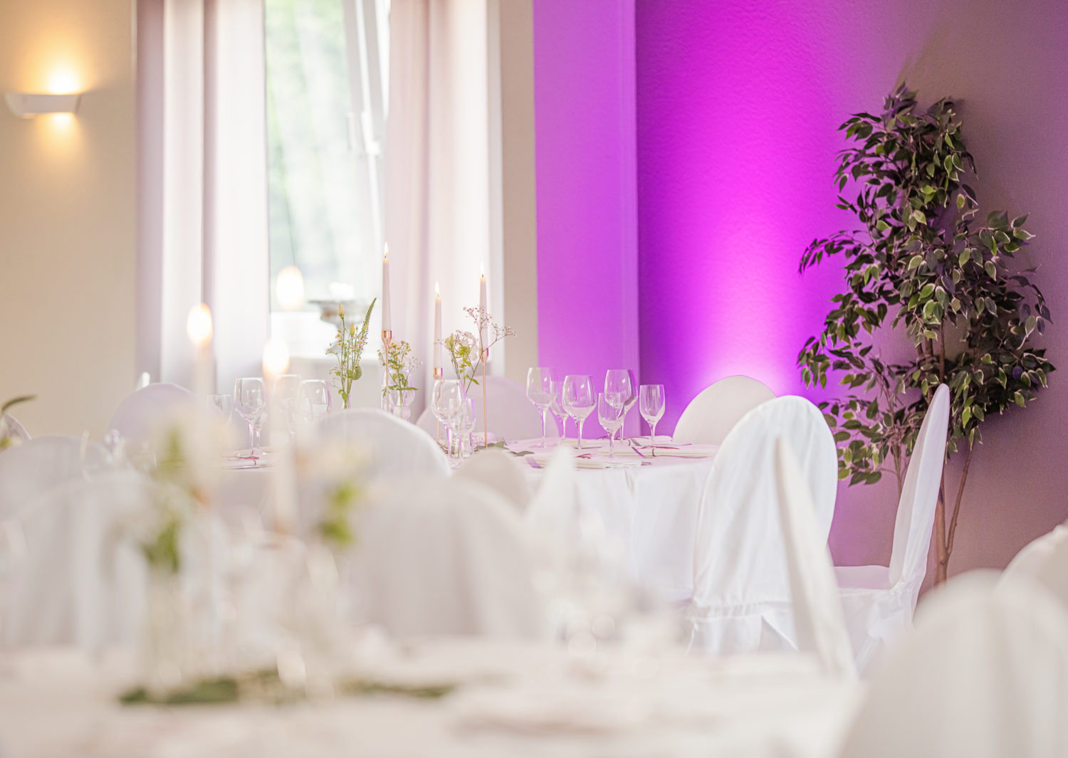 Die perfekte Raumaufteilung bietet Platz für einen großzügigen Tanzbereich, Bankettbestuhlung für bis zu 140 Personen sowie eine festinstallierte Buffetpräsentation. Ebenfalls ist ein kleiner Nischenbereich als Kaffee- & Kuchenbereich nutzbar. Punktuell eingesetzte Stehtische laden während des Empfangs zum Verweilen ein.