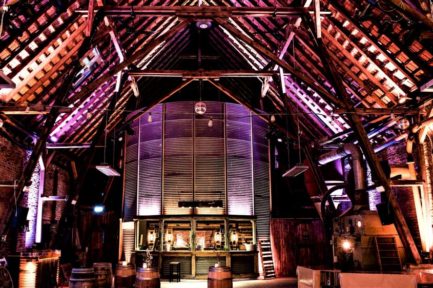 Der imposante alte Kornspeicher wurde als Bar ausgebaut und in Szene gesetzt, hohe Holzbalkendecken und rustikale Backsteinmauern schaffen ein einmaliges Ambiente.
