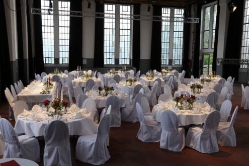 Auf 700 qm, verteilt auf zwei Etagen, mit einer Hallenhöhe von 14 m, auf zwei Außenterrassen mit 100 und 60 qm, mit einem großen Außenbereich, einem Cateringbereich, modernsten Toilettenanlagen sowie kostenlose Parkplätze direkt vor der Tür lassen sich viele außergewöhnliche Wünsche für Ihr Event umsetzen.